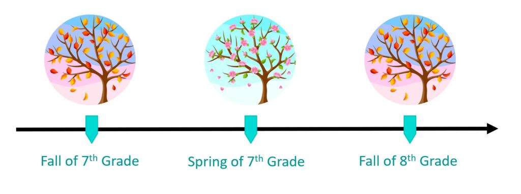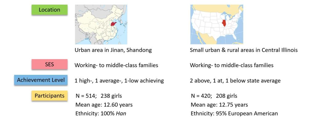 American and Chinese middle schoolers completed a survey in school every six months beginning in the fall of 7th grade.
