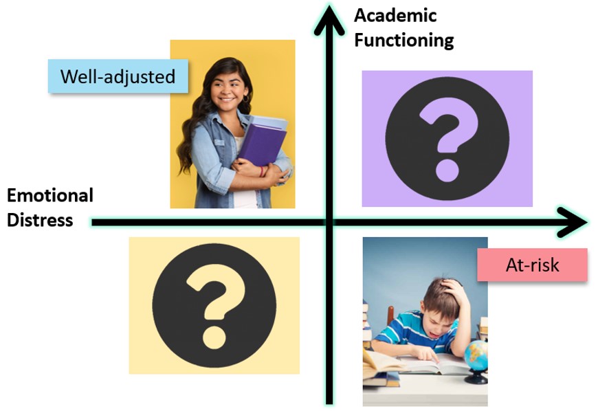 Although much research has shown academic adjustment (e.g., grades; engagement) and emotional adjustment (e.g., lack of depressive and anxiety symptoms) tend to co-occur (e.g., Cheung et al., 2020; Foley et al., 2017; Gumora & Arsenio, 2002; Ma, 1999; Ramirezet al., 2013; Vukovic et al., 2013; Wigfield & Meece, 1988), the correlation between the two is far from perfect. This suggests that not all teenagers are either “well-adjusted” (high academic adjustment and low emotional distress) or “at-risk” (low academic adjustment and high emotional disterss). But little is known as to what other adjustment patterns there are, and whether teenagers in different parts of the world (e.g., China) exhibit different adjustment patterns.