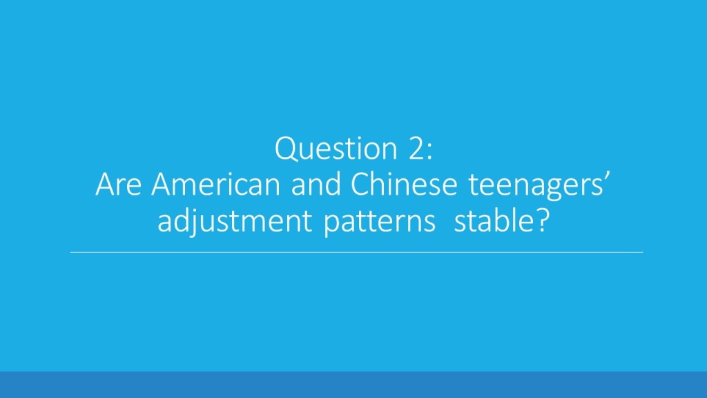 Based on the literature and the scarce empirical attention on the off-diagonal adjustment patterns (i.e., paradox and academically uninvested), I wanted to explore (1) whether these four adjustment patterns do exist not only in the United States, but also in other countries, such as China; (2) whether American and Chinese teenagers are more likely to exhibit certain adjustment patterns than others; and (3) whether teenagers’ adjustment patterns are stable across time.